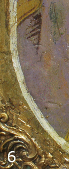 Anschließend wurden die Fehlstellen, welche die Ikone aufwies, mittels Kreide und Hautleim geschlossen sowie egalisiert. Die Retusche an der Ikone erfolgte mit Gouache-Farben (s. Bild 4-6).